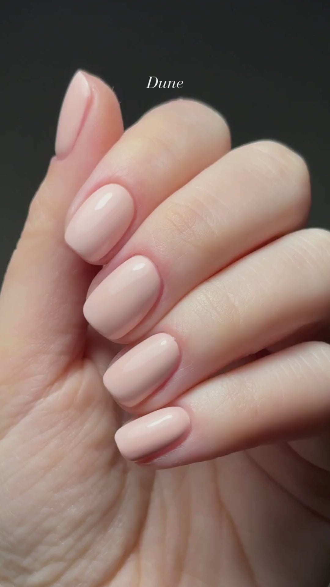 Dune – a soft, sandy beige with warm peach undertones, reminiscent of sunlit desert landscapes. Effortlessly chic and versatile, this timeless neutral adds a touch of natural elegance to any manicure, making it a go-to shade for understated sophistication.