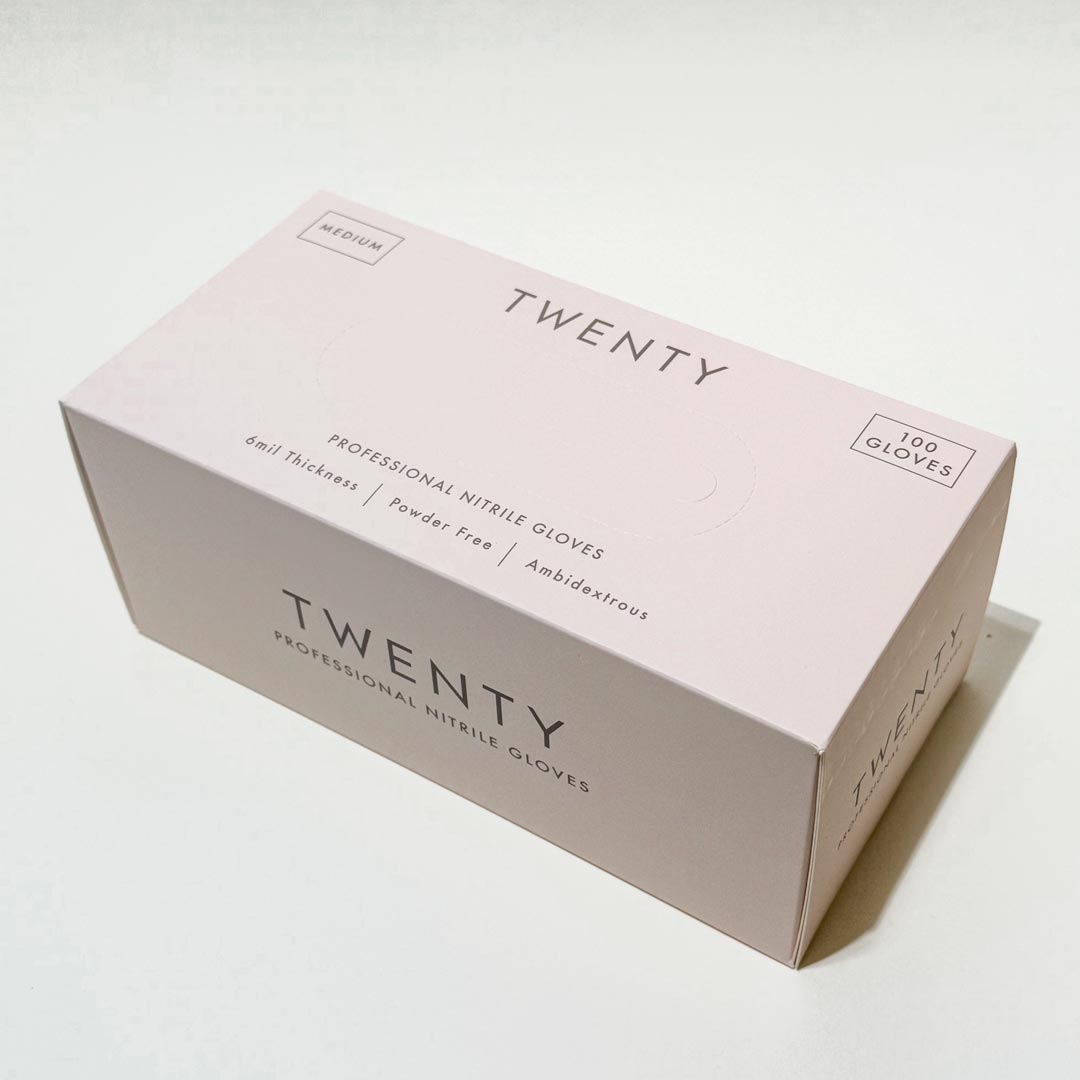 Engineered for premium protection and durability, TWENTY Professional Nitrile Gloves offer a 6 mil thickness for enhanced strength and reliability. Designed with a textured grip coating, these gloves provide superior control when handling tools and products. The chemical-resistant formulation ensures protection against acetone and other harsh salon chemicals, making them an essential choice for nail technicians and beauty professionals. Delivering exceptional comfort, flexibility, and barrier protection for precision work. Trust TWENTY for performance you can feel.