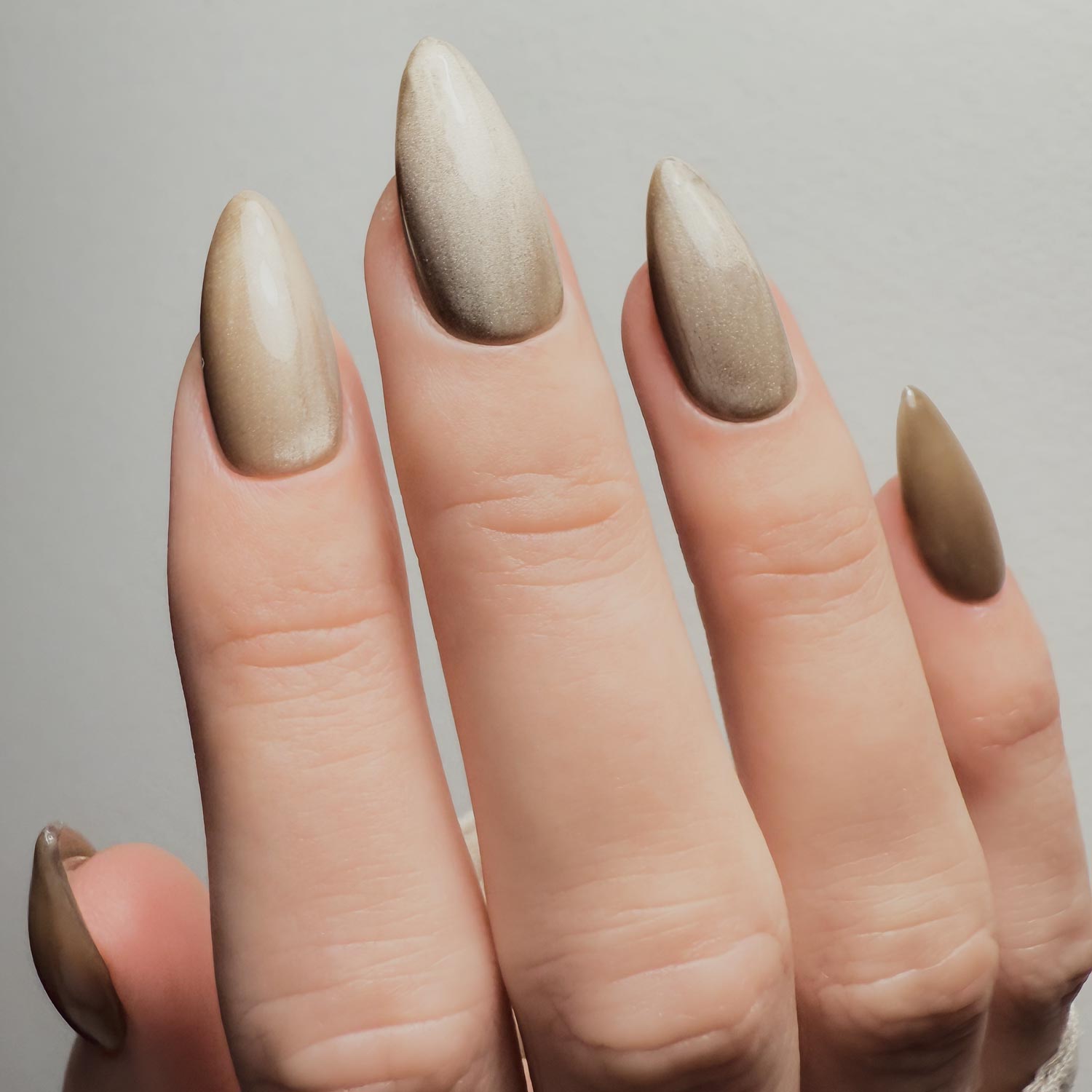 - Cat eye gel requires magnet to move pigment around the nail to create captivating, shimmering designs before curing