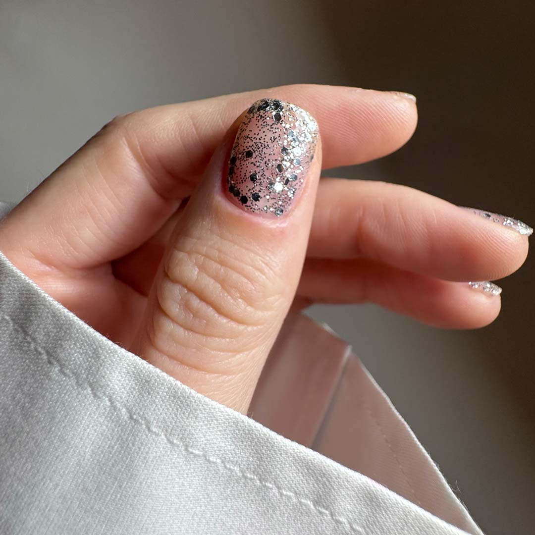 Meet Champs-Élysées — a dazzling, layerable silver glitter that sparkles as brightly as the Parisian avenue it’s named after. Ultra-reflective and beautifully dimensional, this shade can be worn sheer for a soft, twinkling veil of sparkle, or built up for a full, silver-encrusted finish.