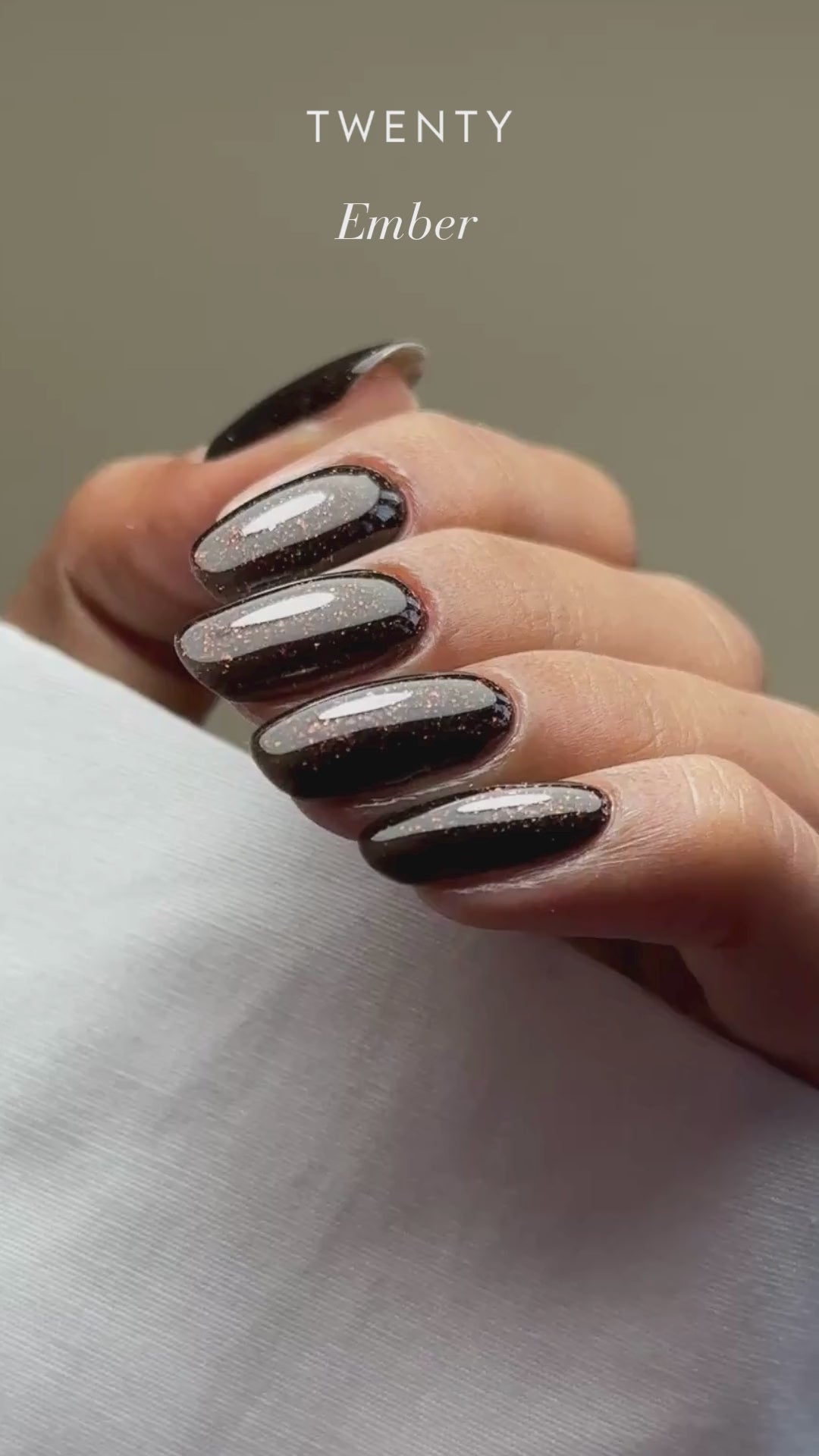 Smouldering, mysterious, and endlessly captivating, Ember is a blackened beauty infused with flecks of fiery copper shimmer. Like glowing embers in a cosy bonfire, this shade shifts subtly in the light, revealing a warm sparkle against its deep, dark base.