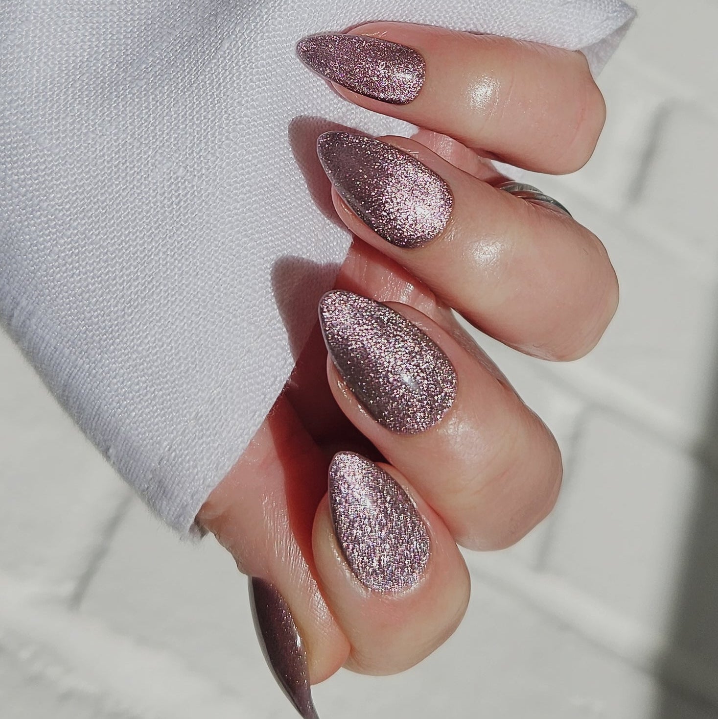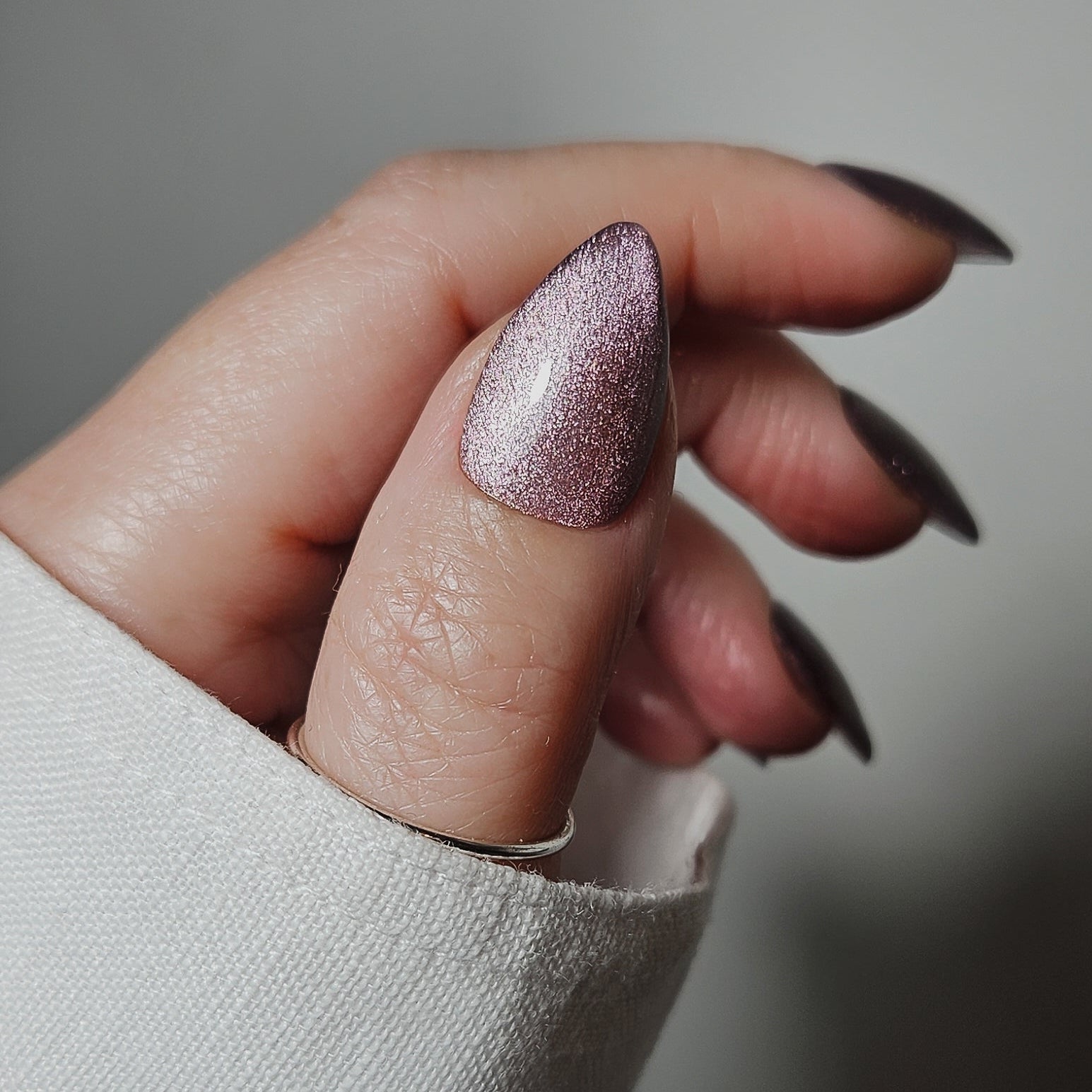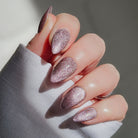 Illuminati is a shimmering aubergine shade with cosmic effects. Pair with silver chromes or a dark base for an out-of-this-world final look.